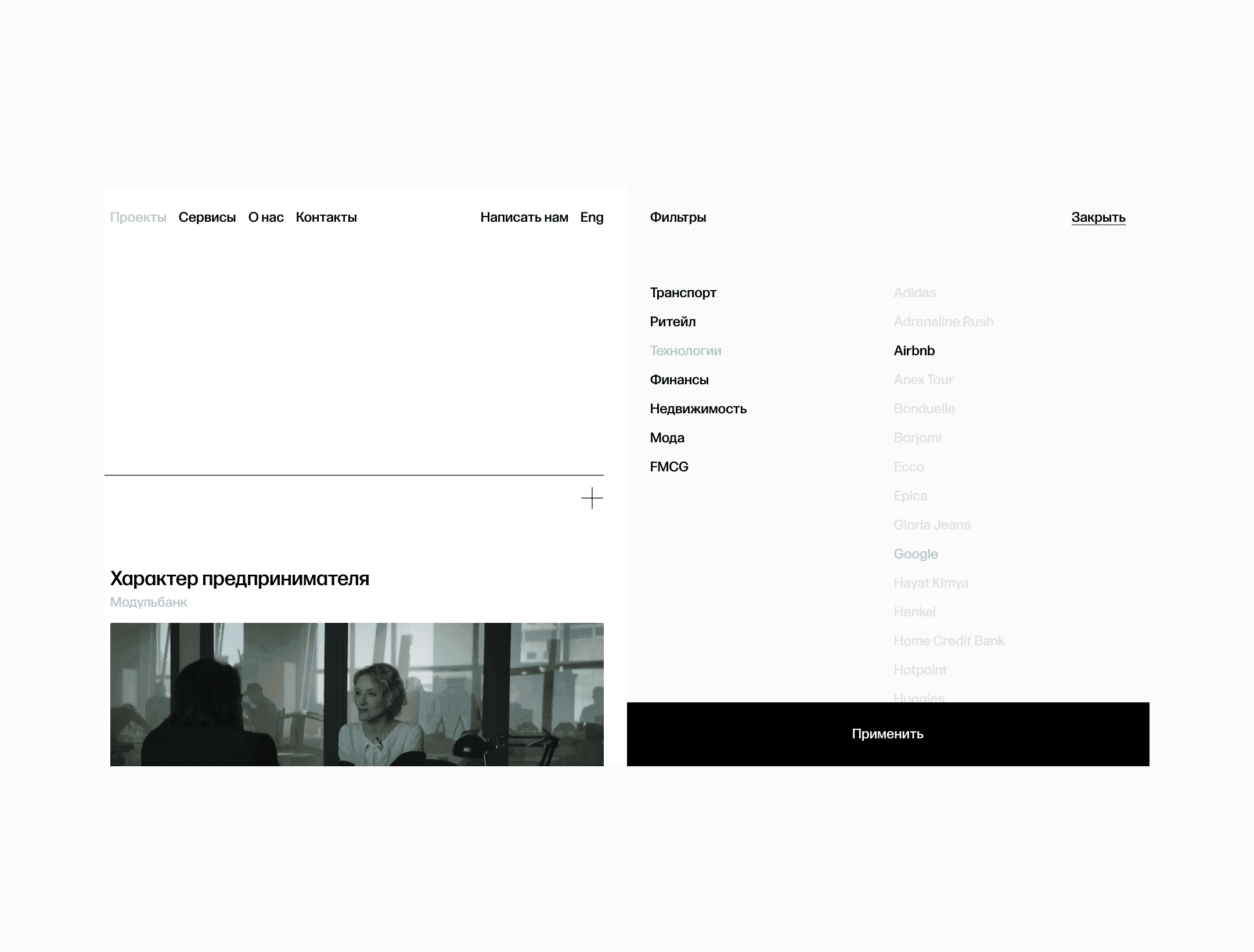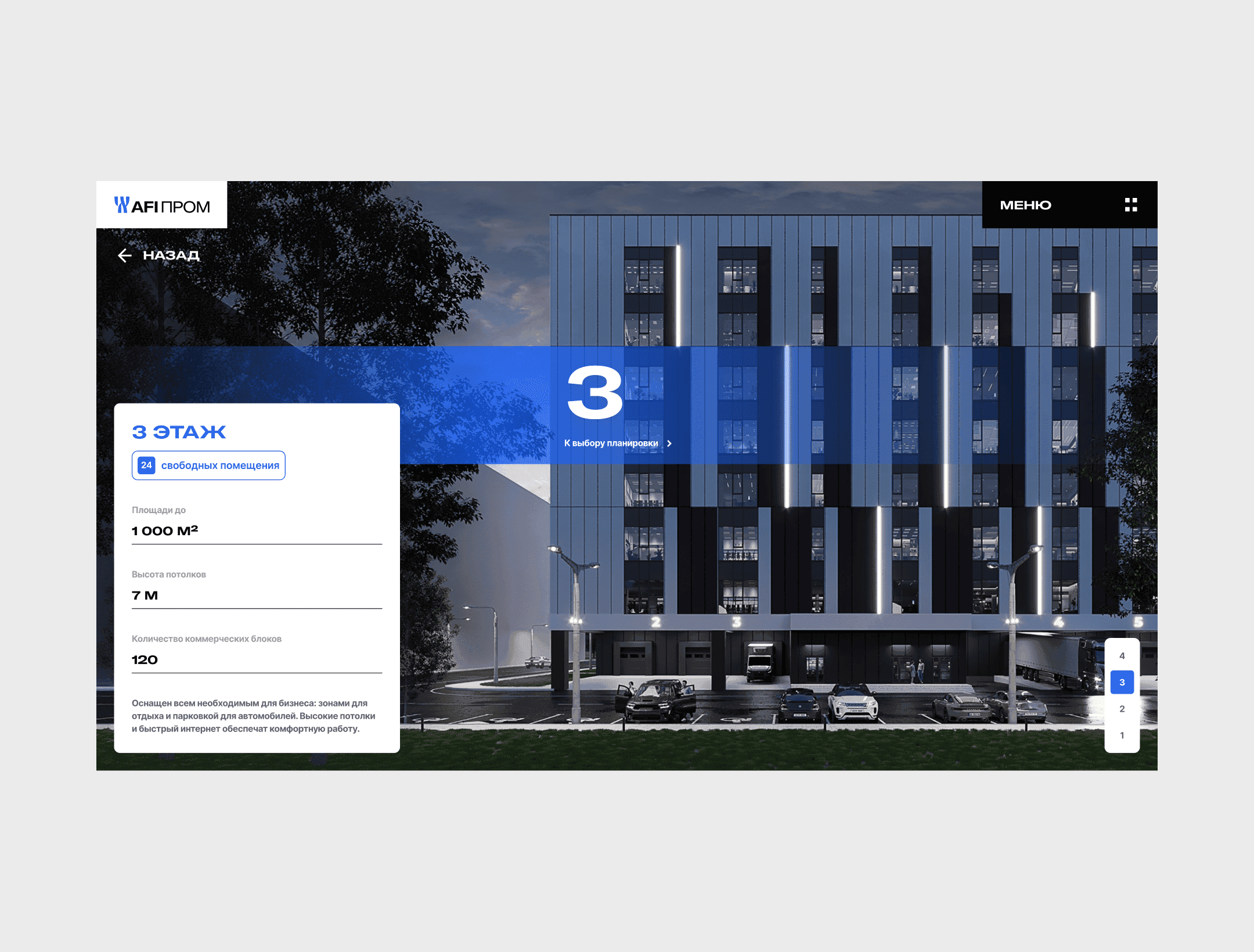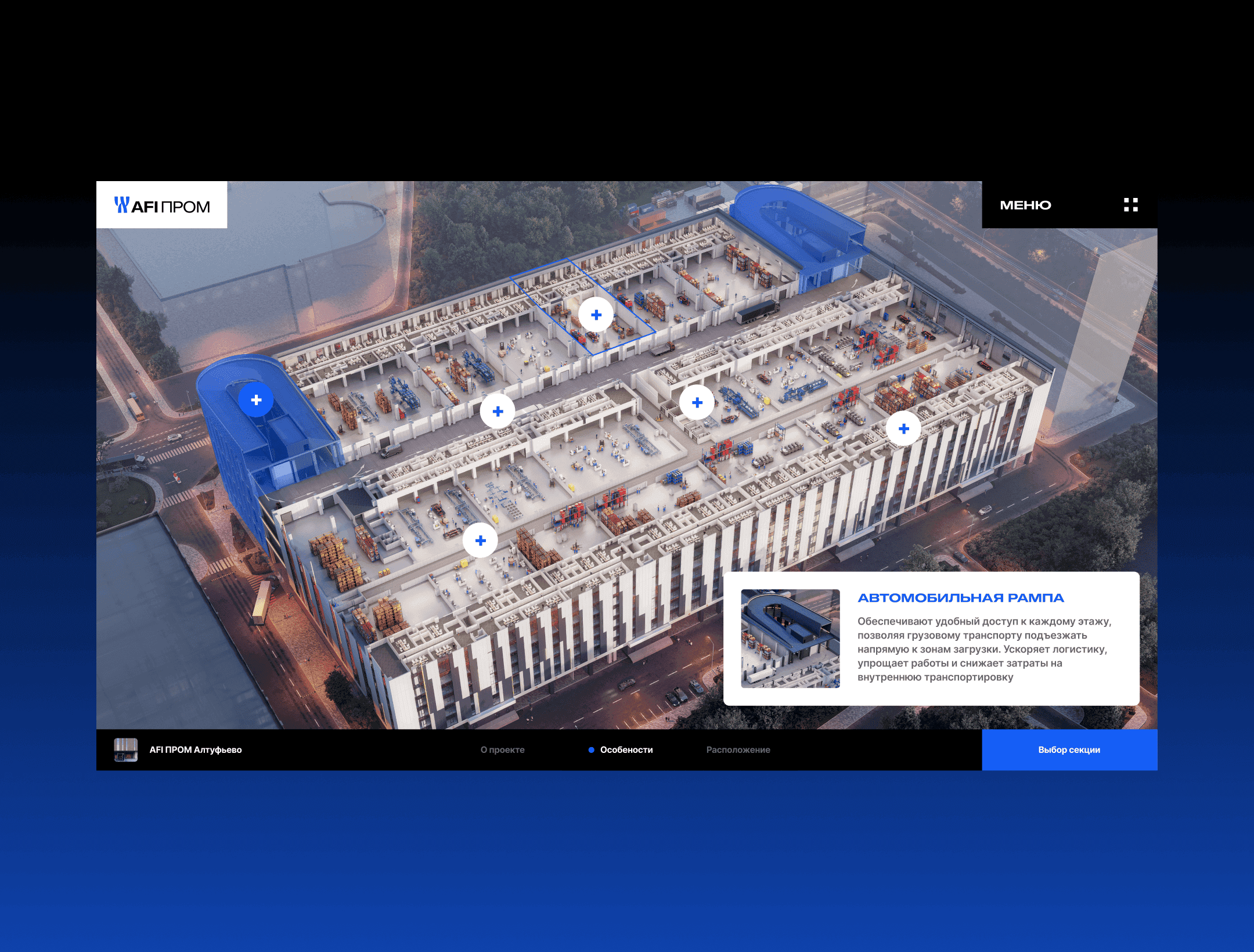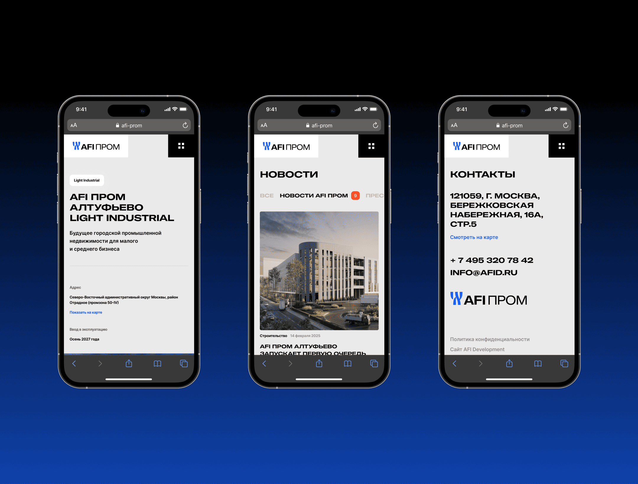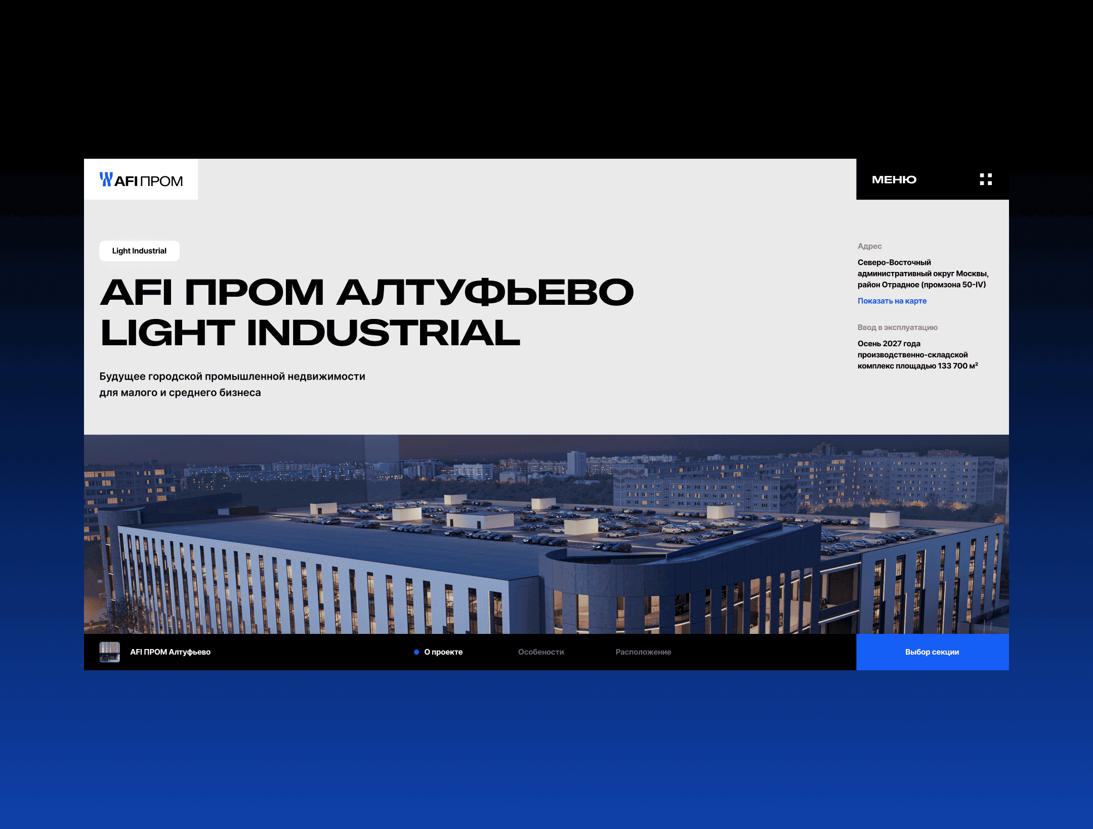 Корпоративный сайт AFI Prom с фокусом на ясную структуру, навигацию и современную подачу промышленной недвижимости. Проект начался с концепта, который нужно было развернуть в полноценную систему для сайта, сохранив строгий характер бренда и сделав интерфейс удобным для расширения на внутренние разделы. Моя зона ответственности: развитие концепции, сетки, навигация, интерфейсные паттерны и компоненты. Я собирал стили и токены, масштабировал визуальную систему, вёл коммуникацию с заказчиком, защищал решения и адаптировал дизайн под бизнес-задачи. Проект получил Short List на WOW Awards.
